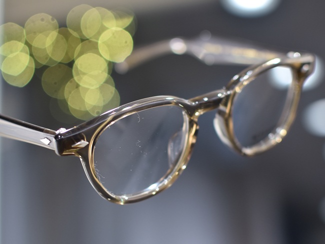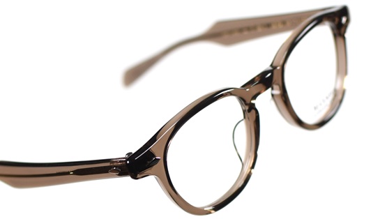 セルロイドの厚みも条件に合わせ、フロントはボリューム感を、 テンプルはぎりぎりまで薄く、軽く仕上げています。
