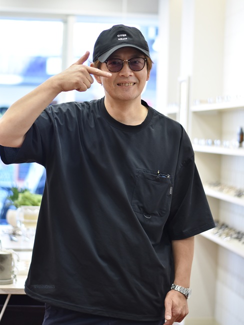 チヨダオリジナル・ライトグレーを採用したスペシャルなアイウェアをスマートにかけこなされていますっ!