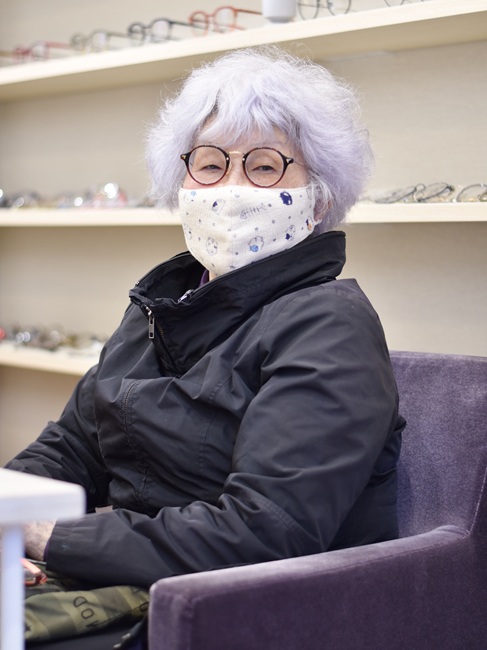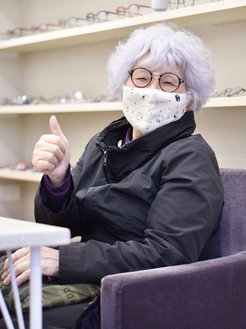 「今回は、丸い感じの赤いメガネがいいわねっ」と、ワクワクしながら選ばれましたアイウェアは