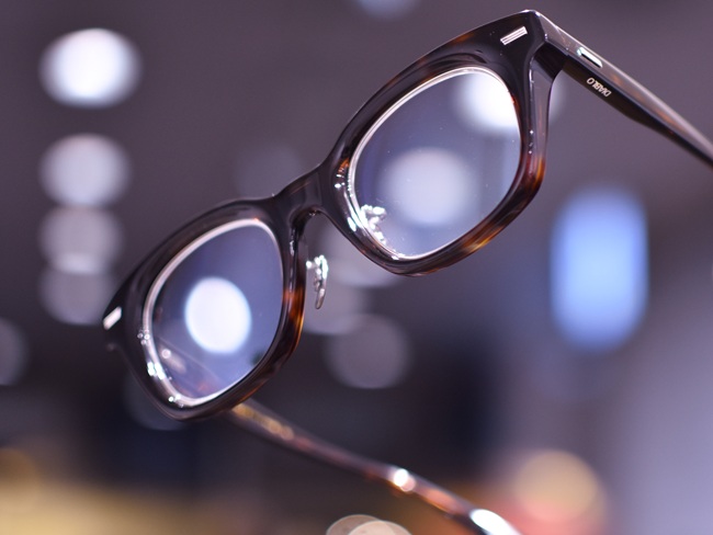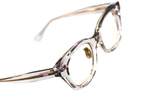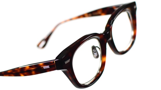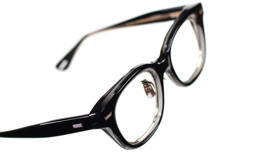フロントは10ミリのアセテートの板材を削り込み、手作業の研磨によって独自の丸みを持たせています。